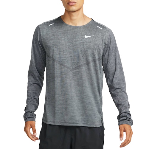 Nike Dri-FIT Techknit Ultra Shirt er en løbetop med lange ærmer til mænd. Det åbne strikmateriale findes på brystet, øvre ryg og ærmer. Dette materiale hjælper med at holde dig kølig under dine løbeture. Toppen har en blød og glat fornemmelse og giver derved fremragende komfort. Dri-FIT-teknologien holder dig tør og behagelig under dine løbeture. Toppen har også nogle reflekterende detaljer.
