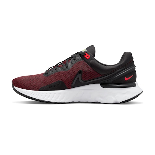 Sålen på React Miler 3 har et unikt rundt design, som giver støtte i alle faser af løbebevægelsen. Nike React-teknologien i mellemsålen giver en blød og responsiv fornemmelse ved hver landing. Bunden af sålen er bevidst bredere for at give mere stabilitet.