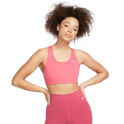Swoosh BH er en ikke-polstret sports BH med medium støtte. Nike Dri-FIT teknologien sikrer god åndbarhed, hurtigere fordampning og en behagelig pasform. BH'en har brede stropper for god støtte og en behagelig følelse.