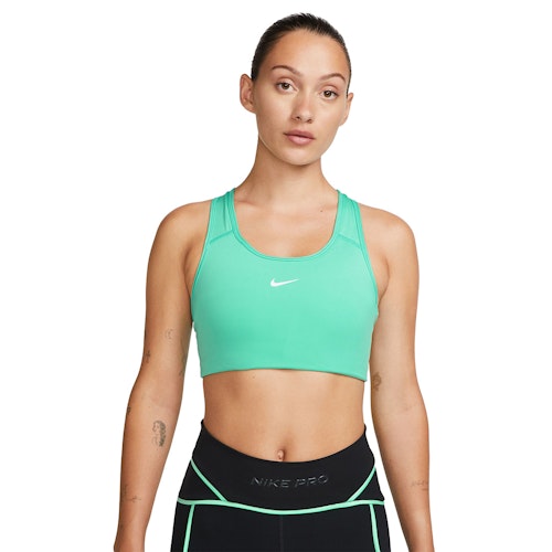 Swoosh Medium-Support Sports BH er en behagelig sports BH. BH'en tilbyder medium støtte og er velegnet til medium-impact sportsaktiviteter såsom; løb, spinning og fitness. Nike Dri-FIT-teknologien sikrer god åndbarhed, hurtigere fordampning og en behagelig pasform.