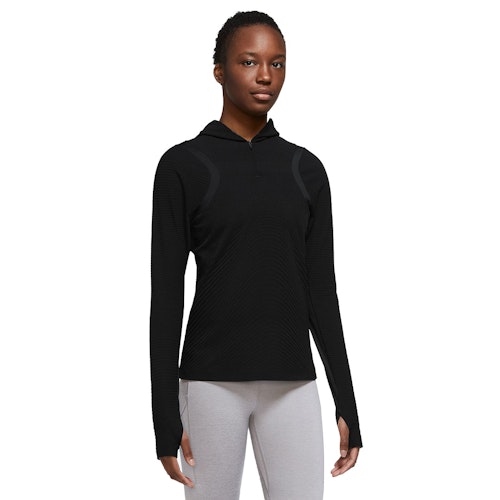 SKU: DQ6649-010 Varegruppe: Løbetrøjer Egenskaber: Hætte Pasform: Slim Farve: Sort Køn: Dame Mærke: Nike