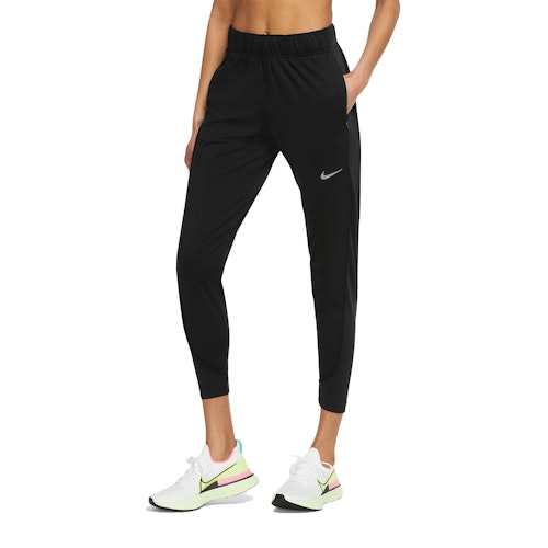 Nike Therma-Fit Essential Pants er behagelige løbebukser til kvinder. Disse træningsbukser har Nikes Therma-FIT-teknologi. Denne teknologi anvender din krops temperatur til at holde dig varm. Det børstede stof har en behagelig følelse og holder dig dejlig og behagelig. Takket være de elastiske sidepaneler får du masser af bevægelsesfrihed. Lommerne på siderne har lynlås og er store nok til din telefon. Den halvhøje elastiske linning med snor sikrer fremragende bevægelsesfrihed.