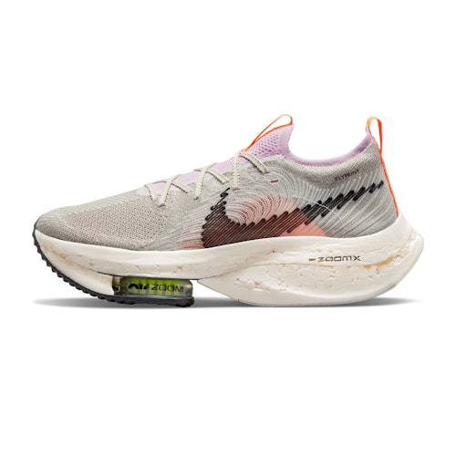 Nike Zoom Alphafly Next Nature er en ultralet, neutral løbesko. Den bæredygtige sko er lavet af genbrugsmateriale, hvilket også afspejles i det markante design. Overdelen er lavet med Nike Flyprint-teknologi, en 3D-printteknik, der føles let og giver dig målrettet støtte. Teknologien gør desuden skoen meget åndbar og hurtigtørrende og giver dig en frisk og behagelig følelse under hele løbeturen.