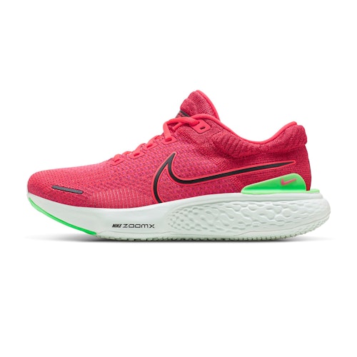 Nike ZoomX-skum er responsivt og let og sikrer en fjedrende fornemmelse med hvert skridt, du tager. Skummet får en rund form, der forbedrer overgangen. Det hjælper med at sikre støtte i alle tre faser af din hæl-til-tå overgang. Det sikrer fleksibilitet, når foden forlader overfladen, dæmpning under landing og en jævn overgang. Den brede base sikrer en stabil oplevelse og giver energi tilbage ved hvert skridt. Fordi der blev tilføjet mere skum til mellemsålen, vil du også opleve mere dæmpning. Den store og brede form på forfoden sikrer en stabil tur.