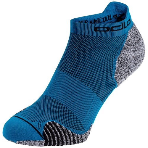 Odlo Ceramicool lave sokker til mænd og kvinder er behagelige løbestrømper. Disse sokker er specielt designet til løbere. Ceramicool-teknologien i strømperne holder fødderne kølige takket være keramiske partikler, der køler fødderne effektivt. Sokkerne væger fugt og er meget åndbare. Sokkens hæl og tæer er mere holdbare og giver ekstra beskyttelse takket være den ekstra foring.