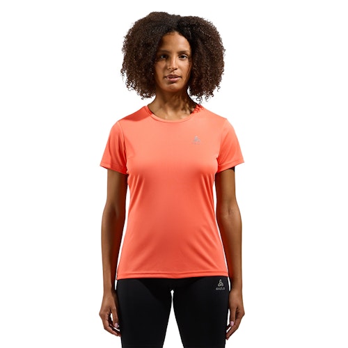 SKU: 313831-30875 Varegruppe: Løbe T-shirts Pasform: Regular Farve: Orange Køn: Dame Mærke: Odlo Materiale: 67% genanvendt polyester 33% polyester