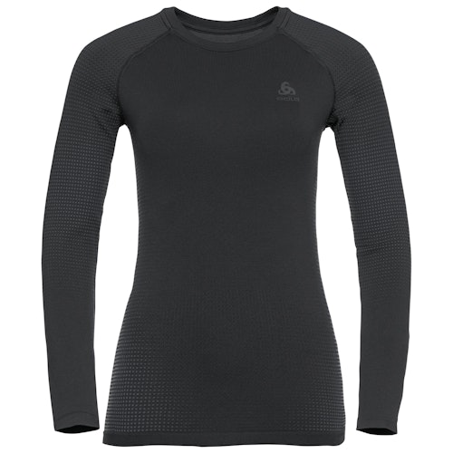 Odlo Performance Warm ECO Shirt til kvinder er en termisk top med lange ærmer. Toppen er lavet til 100% genbrugsstoffer for at reducere påvirkningen på miljøet. Toppen holder dig varm, når du løber under koldere forhold. Materialet vækker fugt effektivt væk, og takket være ventilationszonerne er det meget åndbart. Den kropskarrende pasform giver mulighed for en masse bevægelsesfrihed.