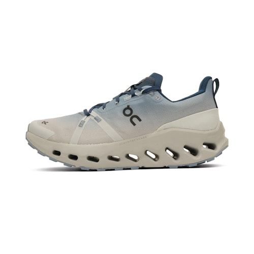 Overdelen er lavet af Swiss-Engineered mesh. Overdelens åndbarhed holder dine fødder behagelige. Overdelen består desuden af genbrugsmaterialer. På den måde forsøger On blandt andet at gøre sine produkter mere og mere bæredygtige. Den 360° vandtætte overdel er fuldstændig vandtæt og bevarer samtidig åndbarheden, så sveddampen kan fordampe. Den plisserede pløs på denne sko er fastgjort til overdelen på begge sider, så der ikke kan komme snavs ind i skoen, og pløsen forbliver centreret.Brug sål