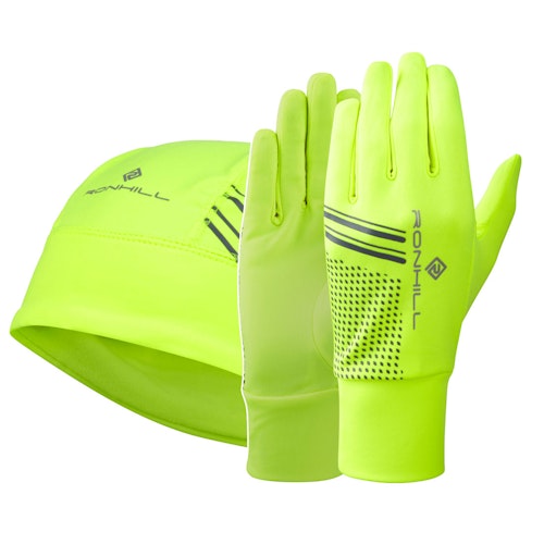 Det ideelle sæt til dine løbeture om vinteren. Ronhill-handskerne holder hænderne varme, og Ronhill-beanien holder hovedet varmt. Med dette sæt har du ikke flere undskyldninger. Huer og handsker har mange reflekterende elementer.