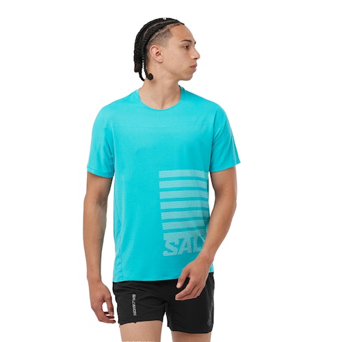 Tag denne Salomon løbe-T-shirt på og forfølge dine mål. Fokuser på din træning eller træning og lad ikke noget holde dig tilbage. Denne T-shirt er lavet af let og fugttransporterende stof for at holde dig kølig og tør under træning. 37.5®-teknologien optimerer din krops mikroklima for at opretholde en ideel kernetemperatur, så du kan præstere bedre og længere. Derudover tørrer det 5 gange hurtigere end et sammenligneligt stof. Ionic+® Botanical Antimicrobial teknologi giver en biologisk antimikrobiel behandling mod lugt og bakterieopbygning. Beklædningen har en grafisk behandling, der passer til bestemte årstider. Med denne T-shirt fra Salomon er du klar til alle dine udendørs aktiviteter!