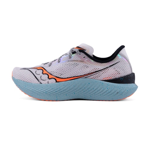 Saucony Endorphin Pro 3 er en behagelig konkurrencesko til enhver distance, hvormed høje hastigheder kan opnås. Endorphin Pro 3 er designet til løbere, der inspirerer og pop hver gang. Med den karakteristiske kulfiberplade og en endnu tykkere bunke PWRRUN PB-skum er du hurtigere og mere eksplosiv for den ultimative løbeoplevelse.