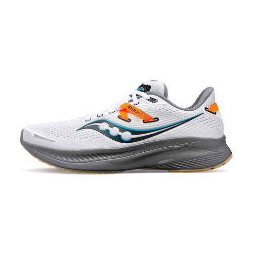 SKU: S20810-85 Varegruppe: All-round løbesko Kollektioner: Saucony Guide Farve: Hvid Køn: Herre Mærke: Saucony Skotype: Pronation Dæmpning: Moderat Forfodshøjde: 27 mm Hælhøjde: 35 mm Offset: 8 mm Lydhørhed: Moderat Støtte: Moderat Bredde: Normal