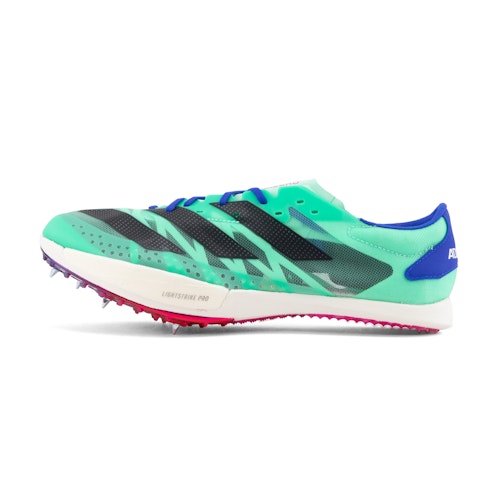 The adidas Adizero Ambition for women and men are spikes. The spikes are designed for medium distance running at high speeds in athletics. The single-layer Celermesh upper is lightweight and keeps feet cool. It gives a tight fit and a good lockdown feeling. The inside is lined with a thin layer of suede for a comfortable feeling when using the spikes without wearing socks.