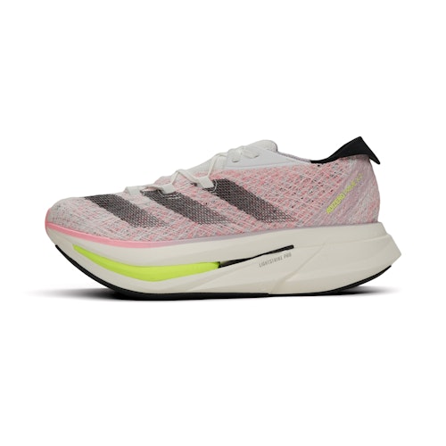 Article number: ID3617 Article group: Competition Running Shoes Collections: adidas Adizero Prime Colour: Pink Gender: Unisex Brand: adidas Shoe type: Neutral Cushioning: Maximum Forefoot height: 43,5 mm Heel height: 50 mm Offset: 6.5 mm Responsiveness: Maximum Support: Minimum Weight: 305 g Plate: Carbon plate Width: Normal Weight: 300+ gram Stack height: 40-50mm (extra high)