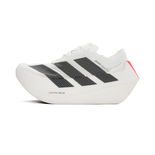 Article number: KH7677 Article group: Competition Running Shoes Collections: adidas Adizero Colour: White Gender: Unisex Brand: adidas Shoe type: Neutral Forefoot height: 44 mm Heel height: 50 mm Offset: 6 mm Weight: 136 g Width: Normal Weight: 0-150 gram Stack height: 40-50mm (extra high)