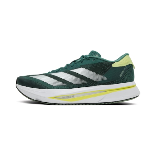 Article number: IH8195 Article group: All-round Running Shoes Collections: adidas Adizero Colour: Green Gender: Men Brand: adidas Shoe type: Neutral Cushioning: Minimum / moderate Forefoot height: 26 mm Heel height: 36 mm Offset: 10 mm Responsiveness: Moderate / maximum Support: Average Weight: 232 g Width: Normal