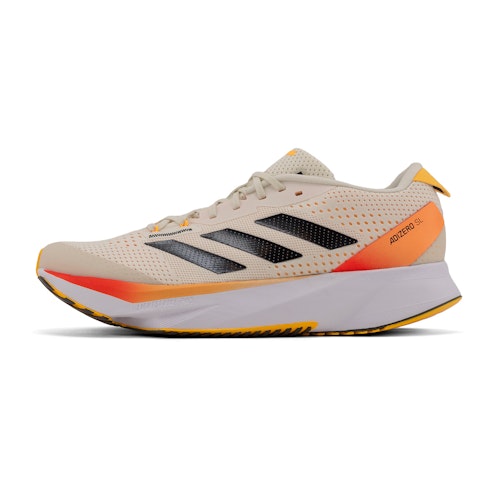 Article number: IG3336 Article group: All-round Running Shoes Collections: adidas Adizero Colour: Cream Gender: Men Brand: adidas Shoe type: Neutral Cushioning: Minimum / moderate Forefoot height: 24,5 mm Heel height: 33 mm Offset: 8.5 mm Responsiveness: Moderate Support: Average Weight: 241 g Width: Normal