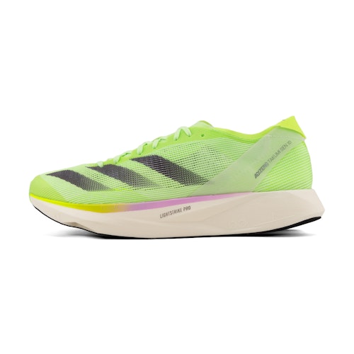 Article number: IG3134 Article group: Competition Running Shoes Collections: adidas Adizero Takumi Sen Colour: Green Gender: Men Brand: adidas Shoe type: Neutral Cushioning: Moderate Forefoot height: 27 mm Heel height: 33 mm Offset: 6 mm Responsiveness: Maximum Support: Minimum Weight: 201 g Plate: Carbon plate Width: Normal Weight: 200-300 gram Stack height: 30-40mm (high)