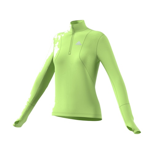 The adidas Own The Run 1/2 Zip Shirt for women is a long-sleeved running top. The top wicks moisture effectively and keeps you dry during your runs. The Climawarm technology has a thermal characteristics and keeps you warm in colder days. The material dries fast and is highly breathable. The half-zip on the front of the top allows you to manage your body temperature.