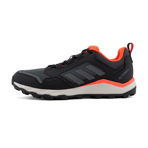 Article number: IE9398 Article group: Trail Running Shoes Collections: adidas Terrex Tracerocker Colour: Black Gender: Men Brand: adidas Shoe type: Neutral Cushioning: Minimum / moderate Forefoot height: 17 mm Heel height: 24 mm Offset: 7 mm Responsiveness: Minimum Support: Average Plate: Rock protection plate Trail type: Soft ground Width: Normal