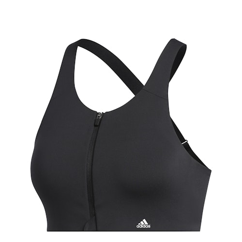 The adidas Ultimate Bra for women is a supportive sports bra. This bra provides a lot of support during your runs and trainings. The adjustable shoulder bands provide a personalisable fit. The shoulder straps can be worn in a cross back style to ensure support and max freedom of movement. The bra is made of recycled materials to reduce environmental impact. The overlays of Power Mesh material increase the bra's breathability. The zipper on the front makes it easy to put on and take off the bra.