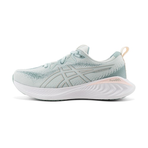 Article number: 1012B441-301 Article group: All-round Running Shoes Collections: ASICS Gel Cumulus Colour: Green Gender: Women Brand: ASICS Shoe type: Neutral Cushioning: Moderate Forefoot height: 29,5 mm Heel height: 37,5 mm Offset: 8 mm Responsiveness: Moderate Support: Average Weight: 229 g Width: Normal