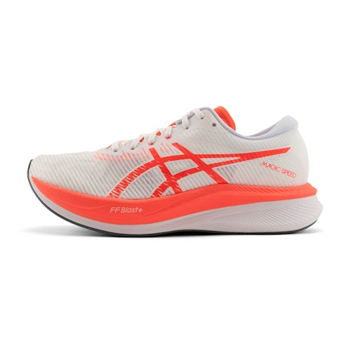 The ASICS Magic Speed 3 COS is a comfortable fast shoe. The shoe is designed for runners who want to get the most out of their training and competitions. The Magic Speed is the perfect shoe for distances up to and including the marathon, but also for long endurance runs at a high pace. Designed to increase your speed, stability and confidence during every race. Go for gold with this competition shoe!