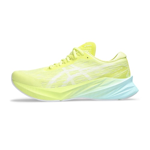 Article number: 1011B458-751 Article group: All-round Running Shoes Collections: ASICS Novablast Colour: Neon Yellow Gender: Men Brand: ASICS Shoe type: Neutral Cushioning: Moderate / maximum Forefoot height: 23 mm Heel height: 31 mm Offset: 8 mm Responsiveness: Minimum / moderate Support: Minimum Weight: 275 g Width: Normal