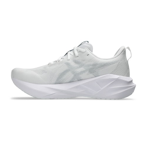 Article number: 1012B765-100 Article group: All-round Running Shoes Collections: ASICS Novablast Colour: White Gender: Women Brand: ASICS Shoe type: Neutral Cushioning: Moderate / maximum Forefoot height: 23 mm Heel height: 31 mm Offset: 8 mm Responsiveness: Moderate / maximum Support: Minimum Weight: 225 g Width: Normal