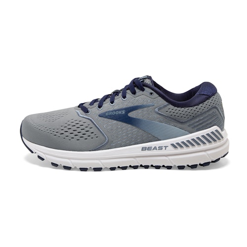 Article number: 110327-4E-491 Article group: All-round Running Shoes Collections: Brooks Beast Colour: Grey Gender: Men Brand: Brooks Shoe type: Stability Cushioning: Moderate / maximum Offset: 12 mm Responsiveness: Moderate Support: Heavy Weight: approx. 348 grams Width: Wide, Extra wide