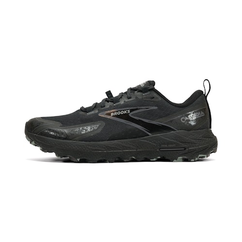 Article number: 110426-1D-072 Article group: Trail Running Shoes Collections: Brooks Cascadia Colour: Black Gender: Men Brand: Brooks Shoe type: Neutral Cushioning: Moderate / maximum Forefoot height: 25 mm Heel height: 33 mm Offset: 8 mm Responsiveness: Moderate Support: Average Weight: 320 g Specifications: Toe-protector lug depth: Medium (3.1 – 4.5 mm) Trail type: All-round trail Width: Normal Weight: 300+ gram Stack height: 30-40mm (high)