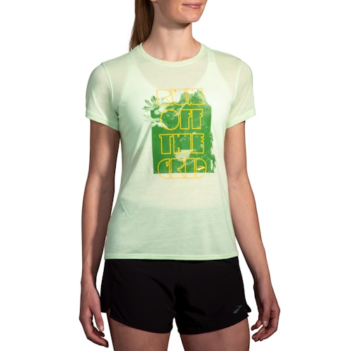 Article number: 221669-342 Article group: Short Sleeve Tops Fit: Regular Colour: Green Gender: Women Brand: Brooks Material: 88% recycled polyester 12% lyocell