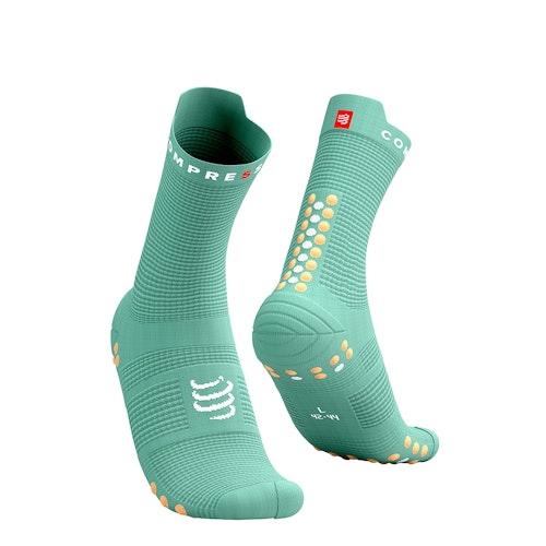 The Pro Racing Socks V4.0 Run High are comfortable, high compression socks that are ideal for your daily run. They contain silicone inserts around the inside of the hem that prevent the sock from sliding down.