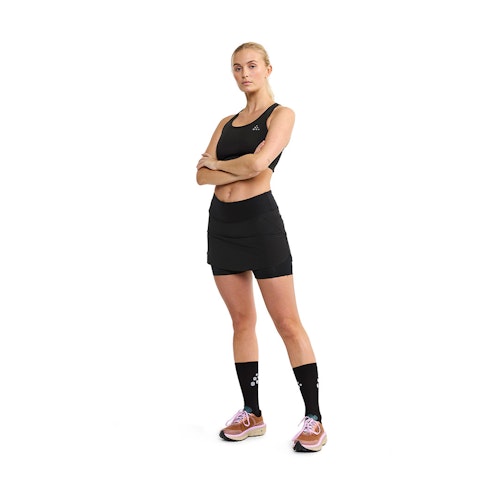 The Pro Hypervent Skirt 2 is a comfortable 2-in-1 running skirt from Craft. When you warm up during exercise, it is nice to have a running skirt that keeps you cool. Pro Hypervent Skirt 2 from Craft is such a running skirt, made of breathable material and also offers a lot of freedom of movement. The Pro Hypervent Skirt 2 has the Pro Hypervent technology. During intense running sessions, this technology will provide superior ventilation. This ventilation is possible due to the thin, super soft and exceptionally light fabric that Pro Hypervent is made of. An elastic waistband with drawstring ensures a snug fit and provides extra comfort. The inner pants are made of ventilating polyester mesh that provides excellent cooling and moisture transport. This versatile 2-in-1 running skirt is specially made for all your running activities!