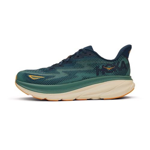 The durable durabrasion rubber outsole with a coarse profile provides excellent grip on any surface. Zones of abrasion-resistant rubber have been added to the heel and forefoot for extra durability. The geometry of the outsole is designed to ensure inherent stability and an efficient stride. The HOKA Clifton 9, the all-rounder you can count on every run!