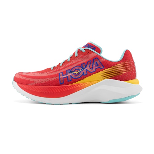 While running, the shoe offers good grip and traction thanks to the rubber outsole. Experience the ultimate speed and agility with the HOKA Mach X, specially designed to take your performance to new heights and make you shine on stage. -