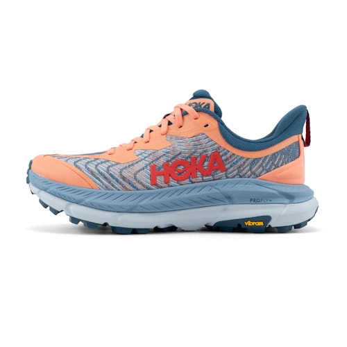 The shoe has a Vibram® LiteBase Megagrip outsole and therefore gives you the best of both worlds. The outsole has a high-quality rubber compound that provides unparalleled grip properties on both dry and wet surfaces. In addition, the outsole is extremely durable. By using Litebase technology, the sole thickness is reduced by 50% and the total weight by 30% while maintaining grip, traction and durability. Discover new trail routes with the HOKA Mafate Speed 4! -