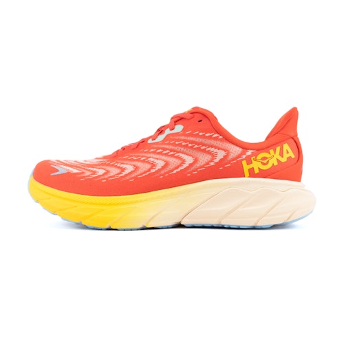 Article number: 1123194-FAYW Article group: All-round Running Shoes Collections: HOKA Arahi Colour: Orange Gender: Men Brand: HOKA Shoe type: Stability Cushioning: Moderate / maximum Forefoot height: 24 mm Heel height: 29 mm Offset: 5 mm Responsiveness: Moderate Support: Average Width: Normal