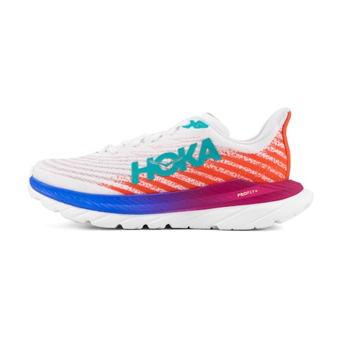 Article number: 1127893-WFM Article group: Competition Running Shoes Collections: HOKA Mach Colour: White Gender: Men Brand: HOKA Shoe type: Neutral Cushioning: Moderate Forefoot height: 24 mm Heel height: 29 mm Offset: 5 mm Responsiveness: Moderate / maximum Support: Average Width: Normal
