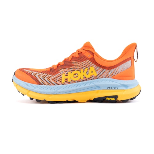 To give you grip on your next trail run, the Mataspeed Speed 4 has a Vibram Megagrip Litebase outsole. Litebase is lighter in weight than regular Vibram rubber, but with the same durability. The 5mm studs give you grip when walking in dry and wet conditions. The HOKA Mafate Speed 4 is ideal to wear while running technical trails.