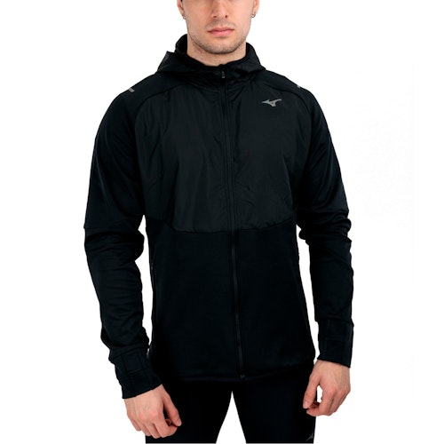 Article number: J2GCA501-09 Article group: Long Sleeve Tops Features: Hood, Pockets Fit: Regular Specifications: Reflective Colour: Black Gender: Men Brand: Mizuno Material: polyester 85% polyurethane 15%