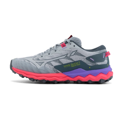 Article number: J1GK2271-42 Article group: Trail Running Shoes Collections: Mizuno Wave Daichi Colour: Multi Gender: Women Brand: Mizuno Shoe type: Neutral Cushioning: Moderate Forefoot height: 25.5 mm Heel height: 33.5 mm Offset: 8 mm Responsiveness: Moderate Support: Average Plate: Rock protection plate Trail type: All-round trail Width: Normal