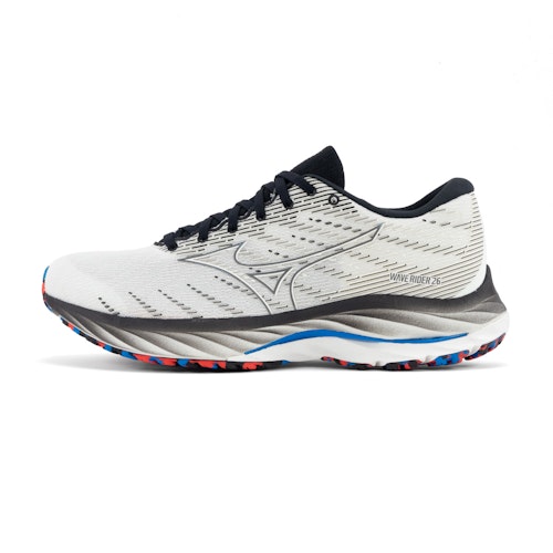 The Mizuno Wave Rider 26 are neutral all-round running shoes. The shoes are ideal for runners looking for a versatile running shoe for their daily run. The Rider 26 is suitable for running both short and long distances. Due to the renewed and thicker sole, the Wave Rider 26 has become more comfortable than its predecessor. What are the updates? The Wave Rider 26 has a 2mm thicker MIZUNO ENERZY midsole. As a runner, you therefore experience more cushioning and energy return. Thanks to MIZUNO ENERZY you enjoy improved flexibility and stability, which is combined with a resilient propulsion. This foam is 15% more resilient than standard EVA foam that is used in many other running shoes. Between the two layers of MIZUNO ENERZY is the well-known Wave Plate, which is a plastic plate in the shape of a wave. This wave-shape ensures a stable landing and more resilience during the take-off. The Wave Plate is slightly reinforced on the inside. When walking, this gives a slightly more stable feeling when tired. The blown rubber outsole provides good grip and is very durable at the same time. Heeled X10 Carbon Rubber. This material is resistant to wear, especially for heellanders. Walk comfortably with every workout with the Wave Rider 26 and experience stability with every step you take.