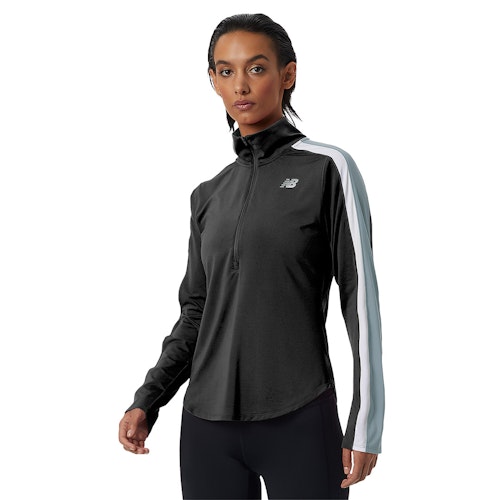 The New Balance Accelerate Half Zip Pullover is a comfortable running shirt with long sleeves and a half zip. The top features New Balance's Dry technology that effectively wicks moisture away from the skin and helps you stay dry and comfortable while running. - Lightweight material