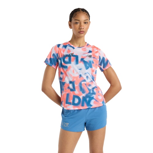 Article number: WT51298DMLT Article group: Short Sleeve Tops Fit: Regular Specifications: Reflective Colour: Multi Gender: Women Brand: New Balance Material: 95% gerecycled polyester 5% polyester