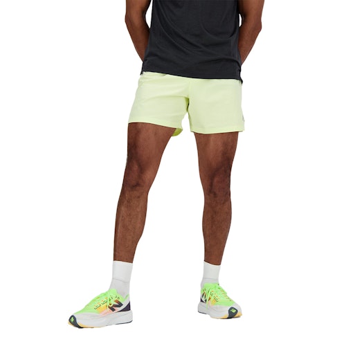 Article number: MS41286LLT Article group: Shorts Features: Drawcord, Pockets Fit: Regular Colour: Neon Yellow Gender: Men Brand: New Balance Material: 86% recycled polyester 14% spandex