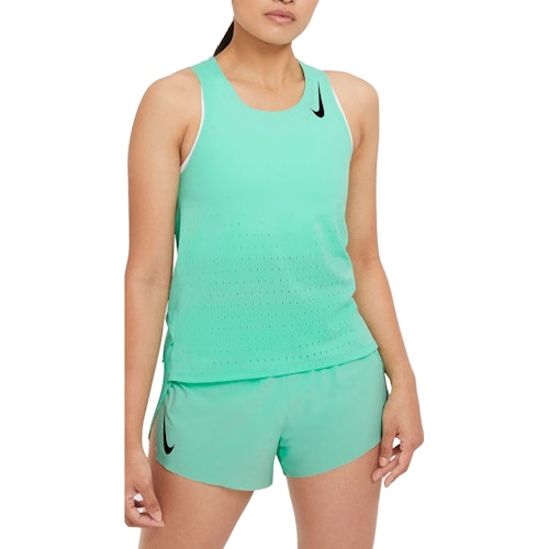 The Nike Aeroswift Singlet for women is a comfortable running top. The top wicks transpiration moisture away effectively and keeps you cool and dry during your runs. The Nike AeroSwift technology ensures excellent freedom of movement. The top has smooth seams which are soft to the touch.