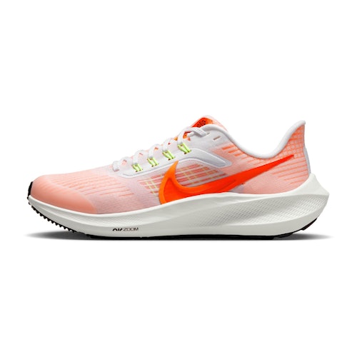The forefoot contains a Zoom Air unit. This unit is filled with air that is under a certain pressure. This unit springs in upon landing and springs back upon impact. The Zoom Air unit is positioned higher and therefore closer to your foot in the Pegasus 39. This gives more responsiveness. This means that you get more energy back from the energy you put in each stride than in average running shoes.