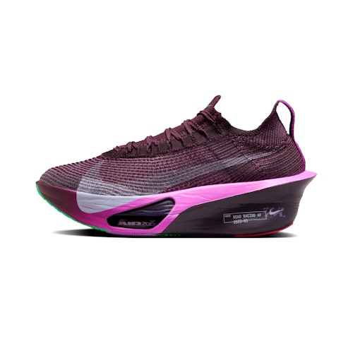Article number: IB4201-600 Article group: Competition Running Shoes Collections: Nike Alphafly Colour: Purple Gender: Women Brand: Nike Shoe type: Neutral Cushioning: Maximum Forefoot height: 32 mm Heel height: 40 mm Offset: 8 mm Responsiveness: Maximum Support: Average Weight: 174 g Plate: Carbon plate Width: Normal Weight: 150-200 gram Stack height: 40-50mm (extra high)
