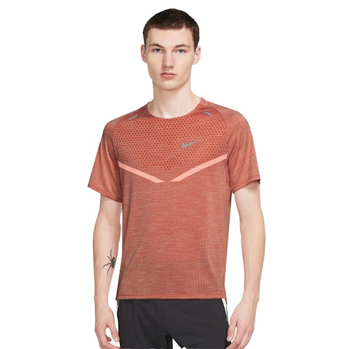 The Nike Dri-FIT ADV Techknit Ultra Shirt is a short-sleeved running shirt for men. Ventilated knit material on the chest, on the top of the back and on the sleeves provides a fresh feeling during your run. Nike Dri-FIT ADV technology keeps you dry and comfortable during your run. The shirt also features reflective details. Knit fabric on the front features the iconic Nike V print that pays tribute to the look of the 1978 Windrunner jacket.